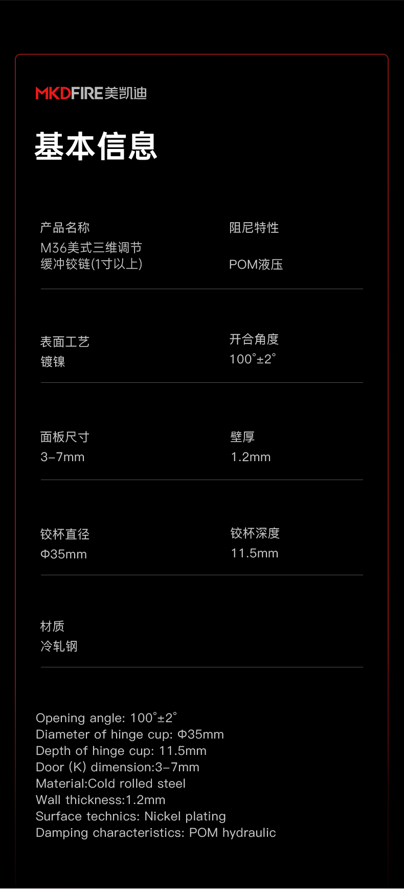 M36美式三维调节缓冲铰链(1寸以上)